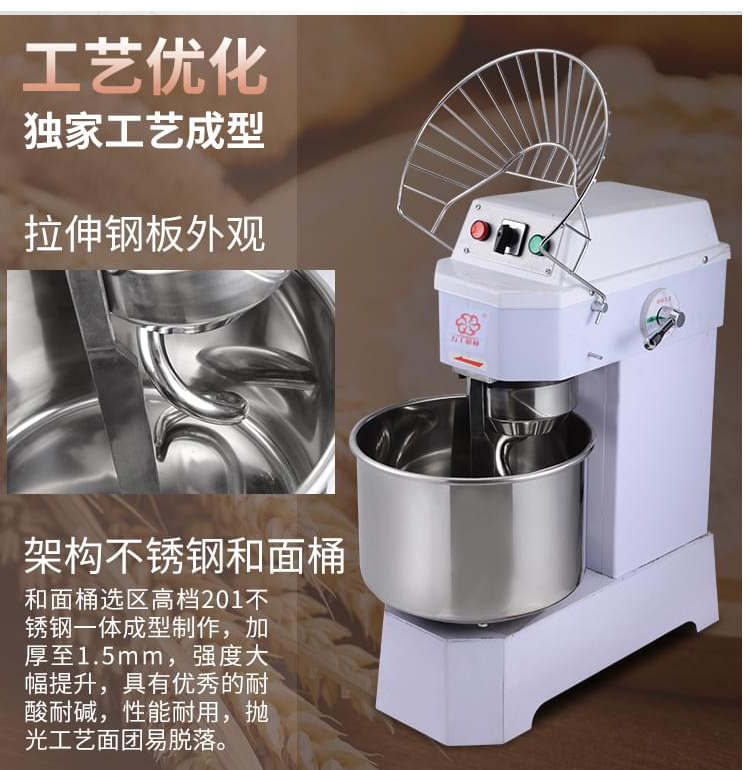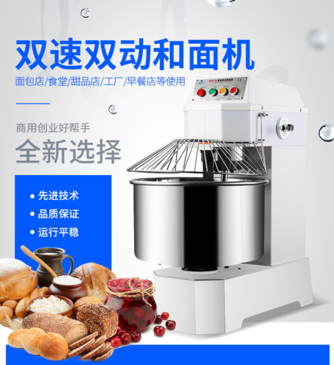【產(chǎn)品優(yōu)勢】:雙速雙動技術(shù),低溫仿手工和面,強驅(qū)動銅質(zhì)電機,使用壽命遠遠高于普通和面機.