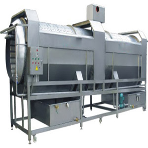 該設(shè)備主要由電機、滾筒、支架、托輪、板刷、噴淋水管、料斗、水箱、傳動軸、電機架、電氣控制開關(guān)等零部件組成。該機采用毛刷模仿人工搓洗模原理進(jìn)行設(shè)計制作,在轉(zhuǎn)動中能夠有效清除果蔬表面的污漬、灰塵和農(nóng)殘等。