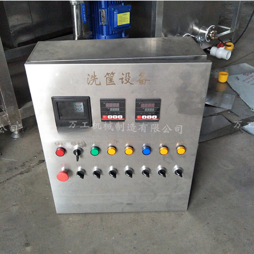 3、設備除電機外均采用SUS304不銹鋼制作。清洗分為三段一段為熱堿水,第二段為熱清水,第三段為自來水。三段噴淋水除第三段自來水外都有獨立循環(huán)過濾水箱,第三段自來水作為補充水回收至第二段水箱加熱使用過后部分污水被自動排出。第二水箱內(nèi)設有蒸汽加熱管,溫度從常溫至60°C自由設定、自動恒溫。
