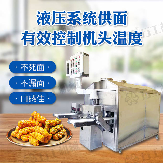 智能液壓四頭麻花機(jī),操作簡(jiǎn)單,采用三調(diào)速結(jié)構(gòu),生產(chǎn)時(shí)將和好的面團(tuán)放入機(jī)器內(nèi),在靜壓推面器的作用下經(jīng)模具出條后,通過(guò)模具的旋轉(zhuǎn)自動(dòng)上勁挽花,再由延時(shí)切段機(jī)自由控制麻花的長(zhǎng)短,產(chǎn)品花形美觀漂亮,高效節(jié)能、安全衛(wèi)生、無(wú)噪音無(wú)污染,極大的提供高了生產(chǎn)效率和產(chǎn)品質(zhì)量。